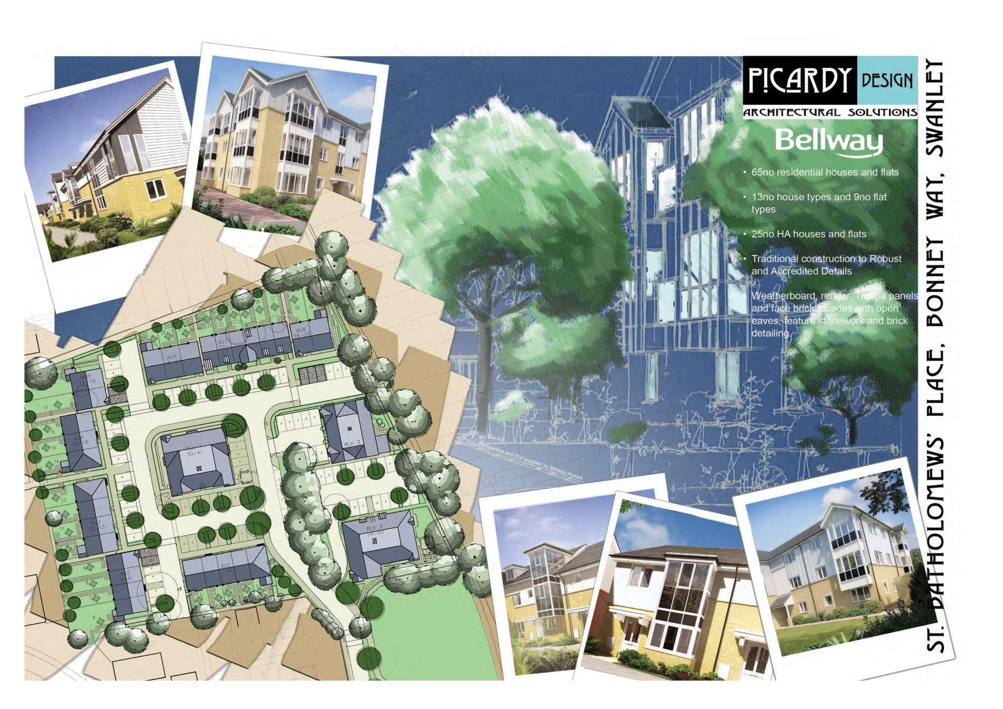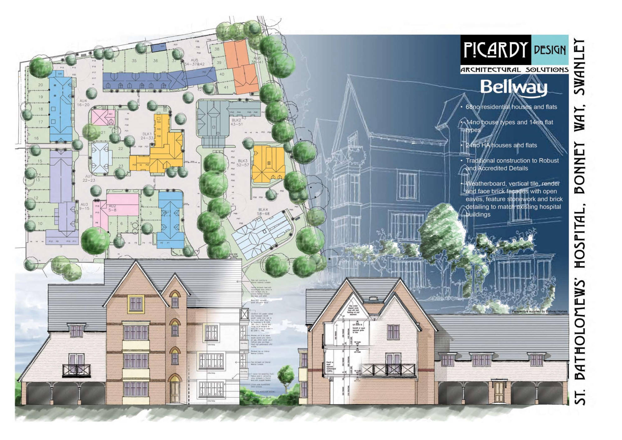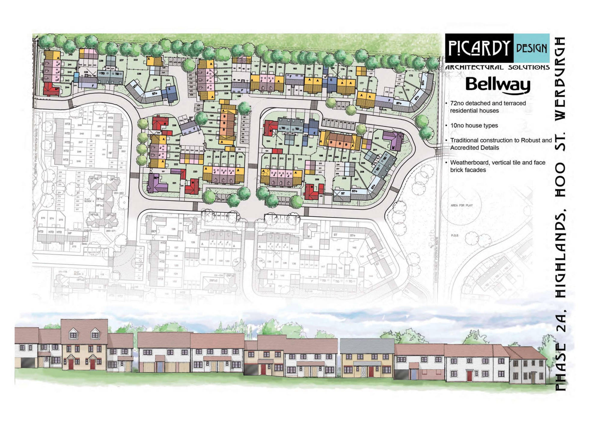 183 houses and apartments utilising Bellway Homes' new range of standard house types and standard details for Bellway Homes Kent (CGIs supplied by Bellway Homes)